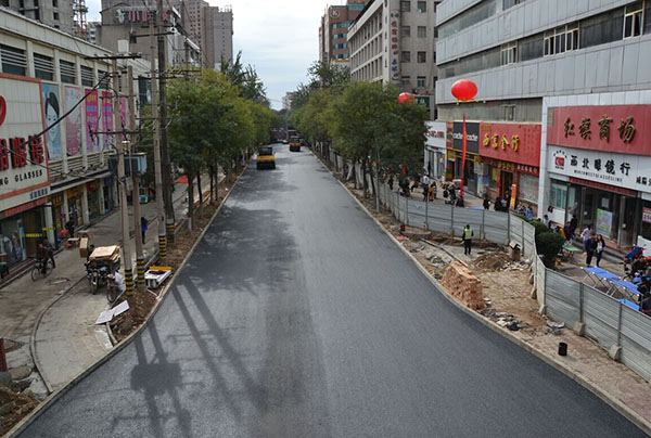 樂育南路以“交通擴(kuò)容”為原則,將雙向二車道改為雙向四車道,同時在原排水磚砌箱涵的基礎(chǔ)上,將其改造成電力管溝,新建雨水箱涵。除了進(jìn)行熱力管道維修和雨污分離管道建設(shè)外,把之前的非機(jī)動車道向兩側(cè)移動,在人行道上開辟出非機(jī)動車道。