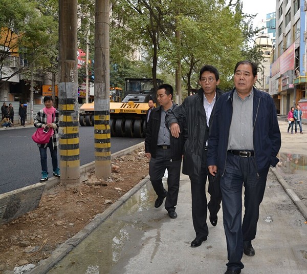 下圖為:咸陽市城建局韓保鋒局長、咸陽市市政工程管理處楊偉生主任、咸陽市建筑安裝工程總公司趙拓總經(jīng)理等在樂育路施工現(xiàn)場檢查、指導(dǎo)工作。