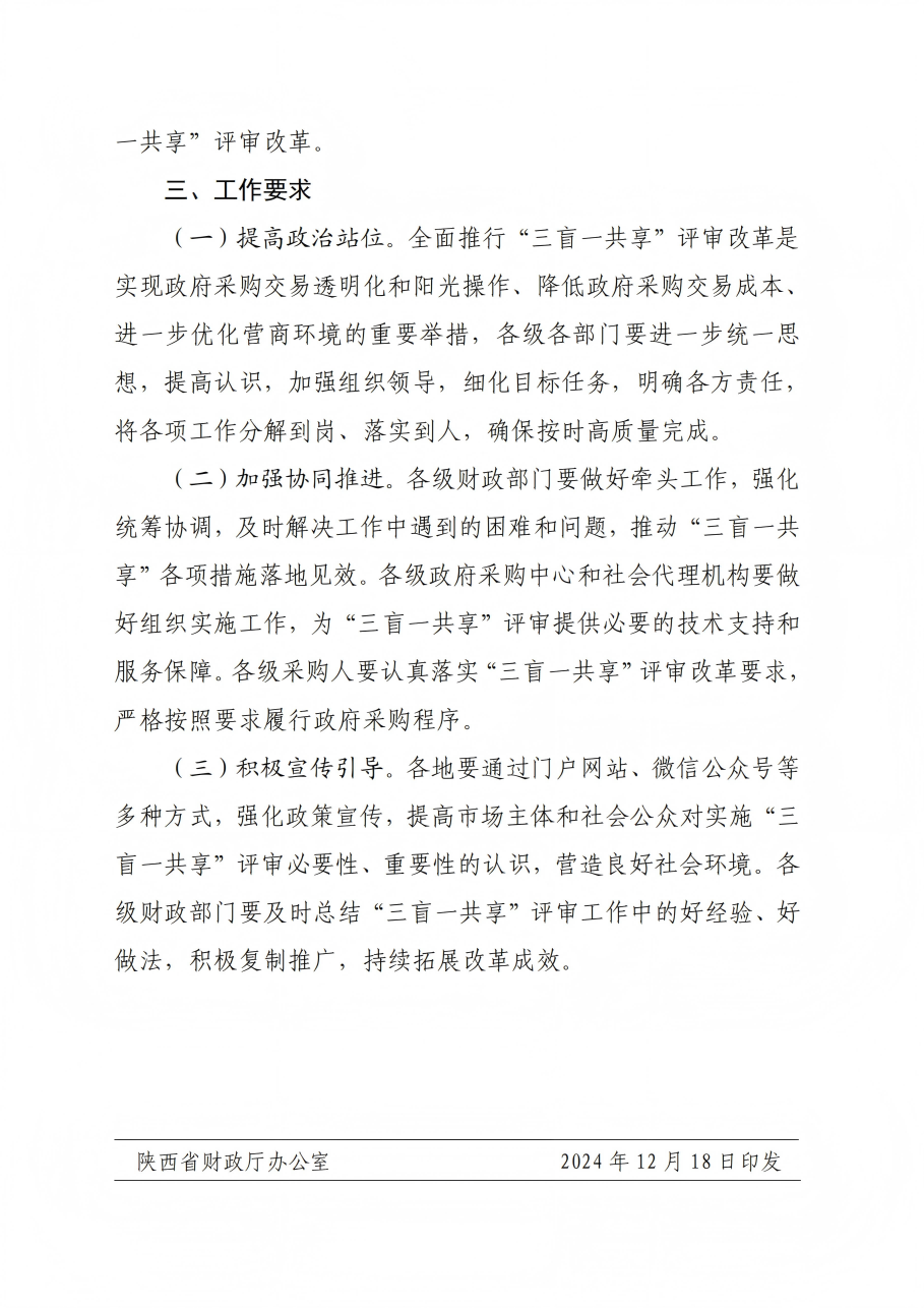 關(guān)于印發(fā)《陜西省政府采購領(lǐng)域“三盲一共享”評審實施方案》的通知